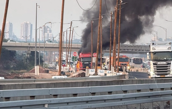 إغلاق شارع رقم 1 بعد اندلاع حريق في شاحنة قرب مفترق مطار "بن غوريون"