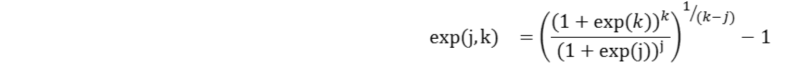 بحيث تكون (j,k)exp هي توقعات التضخم المالي المستقبليّة من نهاية عام j حتى نهاية عام k. فعلى سبيل المثال (3,5)exp هي التوقعات من نهاية السنة الثالثة حتى نهاية السنة الخامسة. و(k)exp هي التوقعات لـ k سنوات، مثلا لـ 5 سنوات. جميع التوقعات معروضة على أساس سنوي.