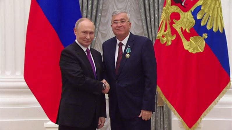 تسلم القنصل العام والفخري لروسيا، الدكتور أمين صفية، من الرئيس فلاديمير بوتين،...