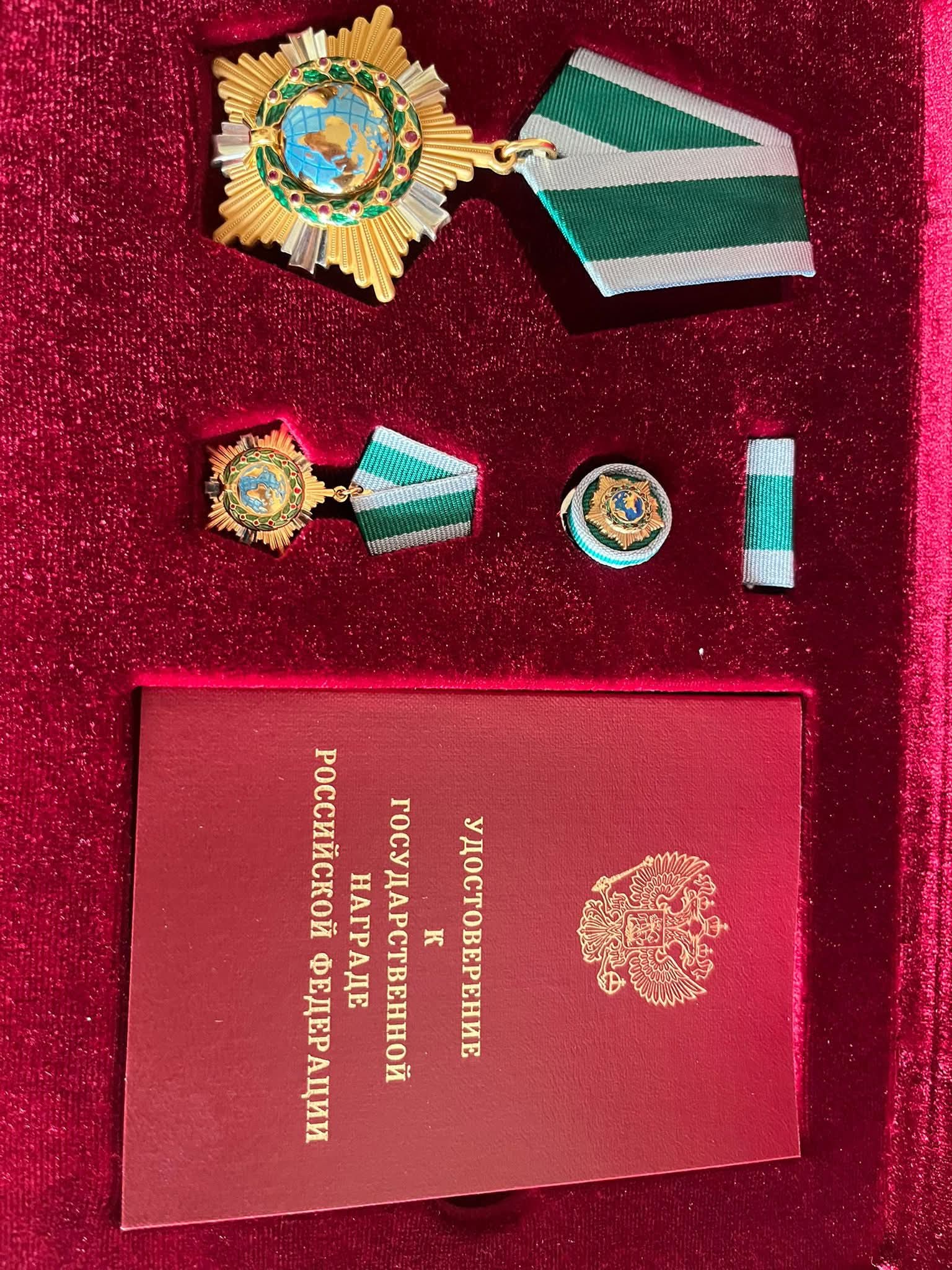 واختتم قائلا: "أؤكد أنني سأواصل، بكل ما أستطيع، العمل من أجل تعزيز العلاقات الدولية والثقافية والإنسانية والاقتصادية مع روسيا الاتحادية، لما فيه الخير لشعوبنا. مرة أخرى، أتقدّم بخالص الشكر والتقدير على هذا الشرف الكبير. شك
