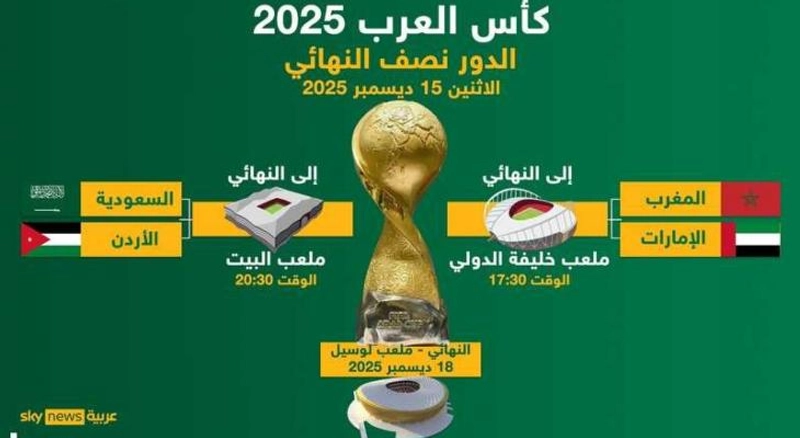 مباراتان حاسمتان اليوم في نصف نهائي كأس العرب 2025