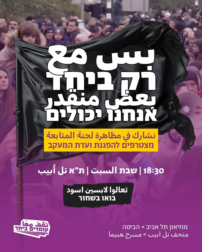 "نقف معًا" يدعو لأوسع مشاركة في مظاهرة تل أبيب اليوم "نرفع الرايات السوداء ونطالب الدولة بتحمل المسؤولية"
