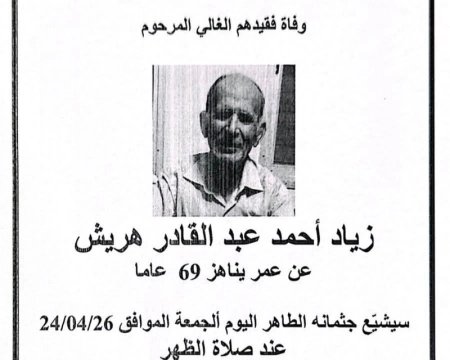 زياد أحمد عبد القادر هريش من الناصرة في ذمة الله