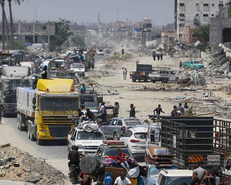 صورة - اعادة فتح شارع الرشيد وبدأ عودة النازحين الى مدينة غزة