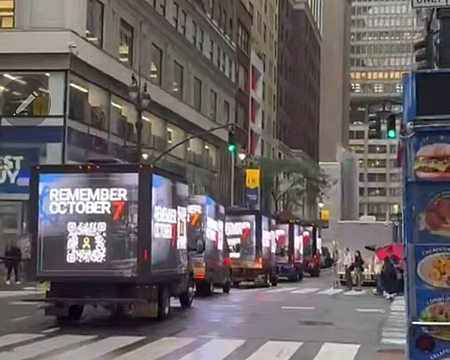 فيديو - شوادر على شاحنات في نيويورك للتذكير بعملية 7 أوكتوبر قبيل خطاب نتنياهو في الأمم المتحدة.أفادت مصادر اعلامية امريكية ان عشرات الشاحنات تجوب شوارع نيويورك...