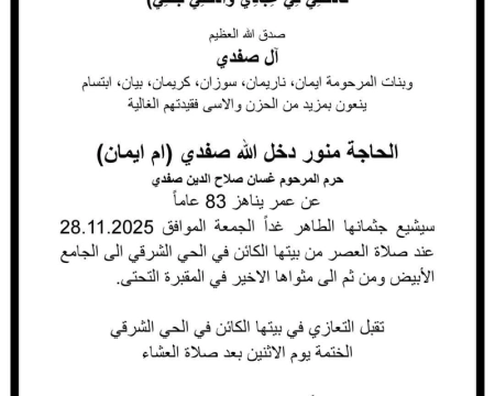 الناصرة - الحاجة منور دخل الله صفدي (أم إيمان) في ذمة الله
